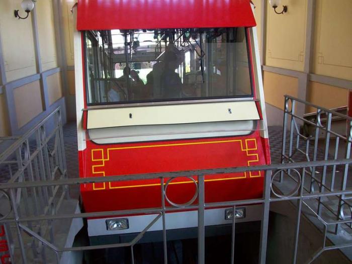 Аккуратный ярко-красный, словно игрушечный, трамвайчик-фуникулёр покатил нас снова вниз.