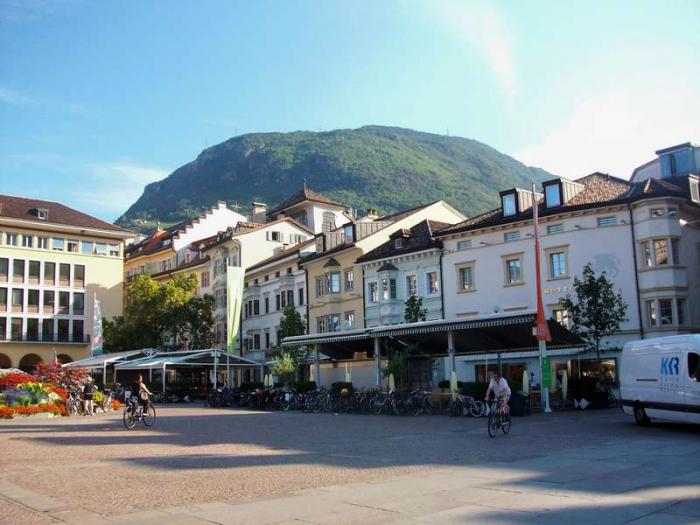 Из Salobbi наш путь лежал в Bolzano (Больцано).По пути преодолели Passo della Mendola (1363м), куда поднимается фуникулер. Спуск показался нам долгим со множеством поворотов. Но это и понятно, потому как Больцано (немецкое Бозен) лежит на относительно низкой высоте всего 262 м над уровнем моря. Расположен этот город в автономной области Италии Трентино-Альто-Адиже. Bolzano родился из сторожевого поста, который построил приёмный сын императора Октавиана Августа – Друз Клавдий Нерон. В 15 г. до н.э. он подчинил себе селения в долинах рек Адиже и Исарко, а для более удобного контроля над территорией основал пост – будущий Больцано – на месте необитаемых болот.