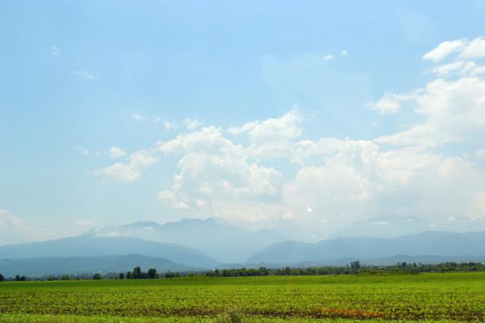На горизонте в голубой дымке стали появляться пока невысокие, но уже сильно изломанные кромки отрогов Кавказского хребта.