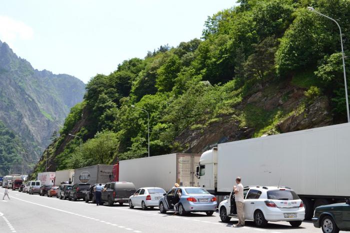 Определенную засаду составляет нейтральная полоса протяженностью в несколько километров. Там скапливаются фуры с грузинской стороны с уставшими от очереди водителями вперемешку с отчаянными джигитами на легковых машинах, норовящими встрять в очередь любым способом, хоть поперек узкой лазейки, которая неохотно оставляется для встречного потока машин с российской стороны.