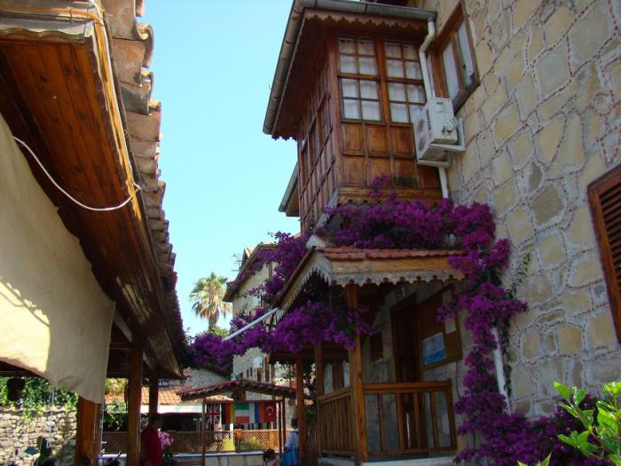 Отельчик Tas Motel (36.766713, 31.390938) мне приглянулся своим выгодным местоположением и невысокой ценой. Хозяин с гордостью показывал на камни своего и соседних домов и говорил, что этот квартал выстроен бутовой кладкой из камней, в свое время взятых с соседних исторических развалин. В подтверждение тому, на территории его маленького садика были живописно разбросаны античные атефакты.