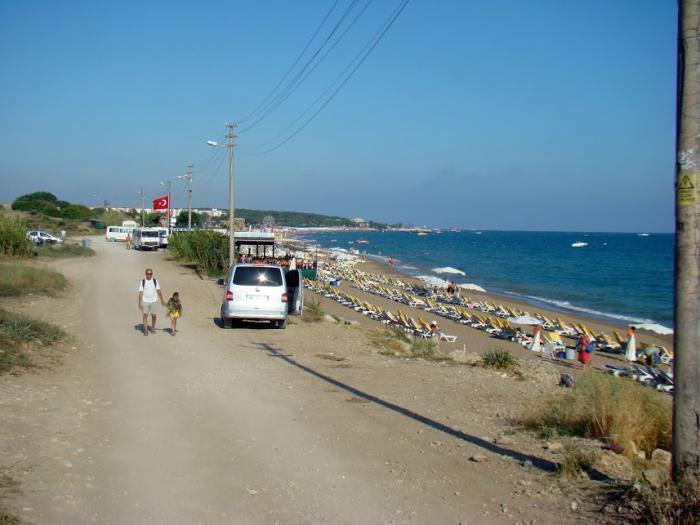 Пыльно-песочная проселочная дорога, где уступая машинам, приходится идти под палящим солнцем сквозь колючки по ржавым лесенкам к морю. Не так я себе представляла «иностранный» пляж в раскрученном месте. Все же Сиде, это не Чиралы…