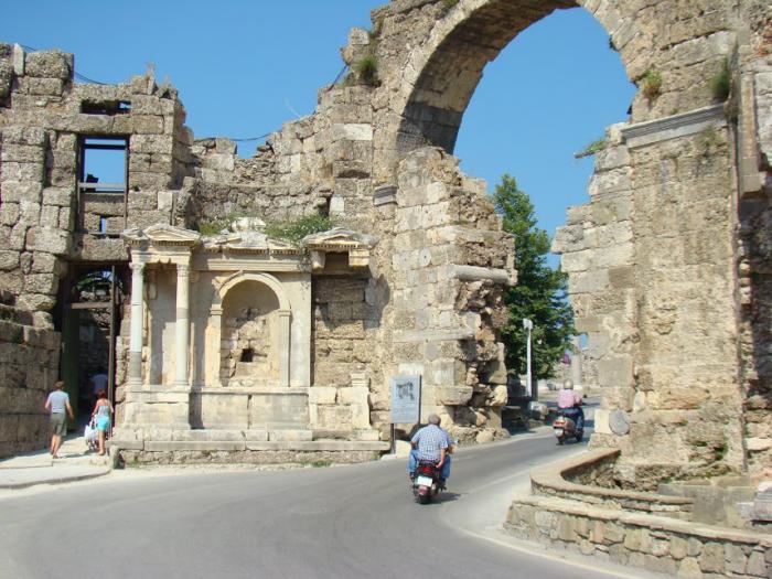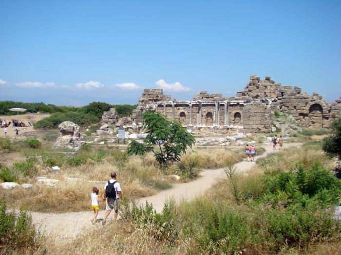 Современный Сиде построен «поверх» древнего города, и живет исключительно за счет туристов, завлекая их славой своего знаменитого предка. Руины вылезают отовсюду, и даже продолжают жить и выполнять свои функции.