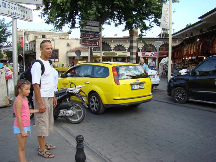 Антеп стремиться повысить свою туристическую привлекательность, и для комфорта не турецкоговорящих приезжих установил кнопки для вызова такси. Удобно, машина приедет к столбику, с которого был сделан вызов. От музея до медного рынка (37.062580, 37.385492) мы доехали минут за десять. Цена удовольствия 15 лир.