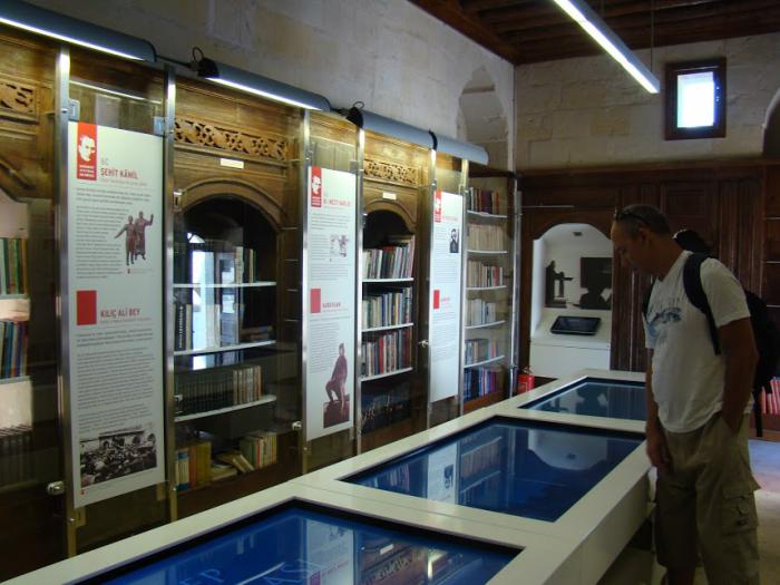 Бродя по переулкам, мы сначала наткнулись на указатель, а потом и на сам музей Ататюрка (37.073472, 37.362563). Одну лиру за билет отдать было не жалко, пошли смотреть, как устроен традиционный турецкий особняк изнутри, а заодно и культ политического деятеля, к тому же я люблю посещать мемориальные квартиры.