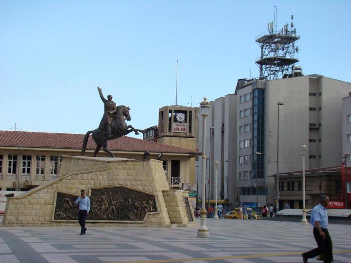 Потом мы решили срезать уголок, и взяли курс к отелю, как мне казалось в правильном направлении, но попались в капкан не линейной логики организации центральных улиц. Никакая карта не помогала. Мы плутали среди бесконечных автомастерских, неаккуратных ремонтных сарайчиков, лавок с электротехникой, и под конец выползли на широкую улицу сплошь занятую обувными магазинами. Широкая улица – это гораздо лучше, чем неухоженные закоулки. На карте портье отеля отметил наше местонахождение и замечательный ориентир в виде площади с Ататюрком на коне.