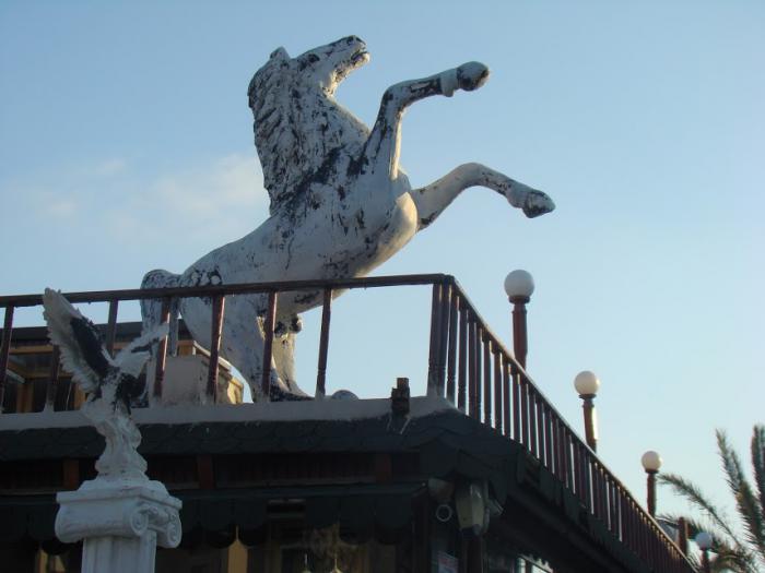 Всем известно, что для связи со своим богом жители этих мест испокон веков избрали путь отличный от визуального, и как следствие, школа и каноны монументального искусства и живописи начали развиваться на Востоке гораздо позже по сравнению с цивилизациями западного толка. На примере с конем на одном из ресторанов в Сиде