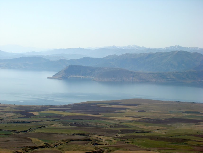 Смотреть на озёра лучше свысока. Если вы даже не собираетесь спускаться к озеру Немрут (Nemrut Gölü), озером Ван лучше любоваться с горы по дороге в кратер. Для этого надо не пропустить съезд с основной дороги (где-то тут 38.524035, 42.271478), коричневый указатель с надписью Nemrut Gölü есть, но поворот не явный, дорога идет между построек, и в моменте стыка с трассой не сильно похожа на обычную примыкающую. Далее все просто, надо ехать в гору примерно 12 км и остановиться на переломе дороги (38.595842, 42.276249). Это не то, чтобы оборудованная смотровая площадка, но машину есть, где оставить, и виды открываются красивые. Например, такие
