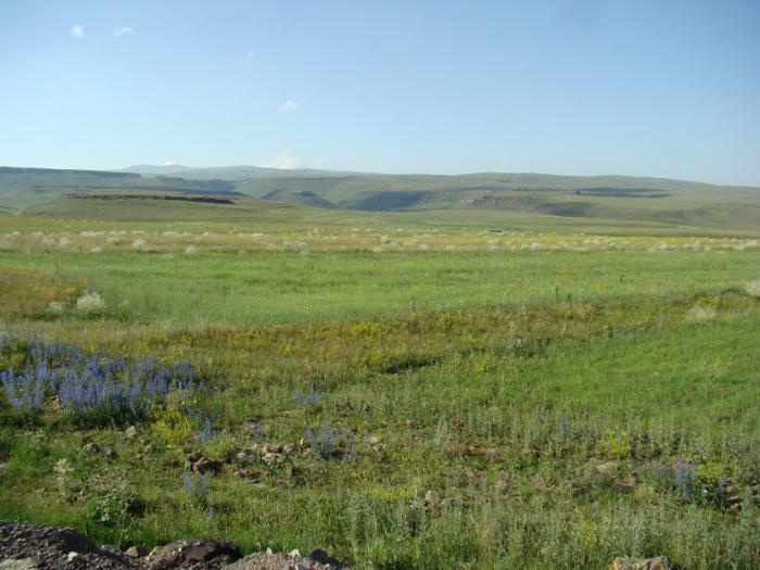 Не доезжая Ыгдира по натужному звуку двигателя машинки и закладыванию ушей поняли, что забрались высоко. После подъема вышли на плоскогорье, и как будто попали в другую страну. Кончились так надоевшие мне колючки, песок земля и глина, чахлые кустики и частые деревни с большим количеством детей на улицах. Мы наконец-то остались в одиночестве, среди зеленых холмов, и до сих пор цветущих лугов. Даже овец в округе не было видно.