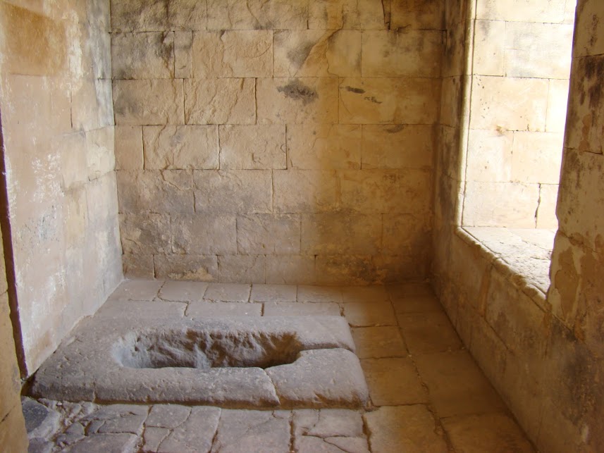В силу собственных представлений я как могла мысленно украшала стены из желтого песчаника. Кстати, внутри помещений украшение из резьбы по камню встречается не часто. Комнаты для осмотра казалось, что уже закончились, но я знала, что я еще не увидела. Мы проявили упорство, пошарились по «общежитию» еще раз и нашли то, что искали. Туалет, не простой, а «царский». Есть у меня слабость к истории канализации, ну, уж простите за такую странность.