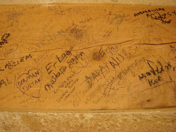 То, что дворец популярен среди местных, можно сделать вывод из надписей на камне и деревянных балках.
