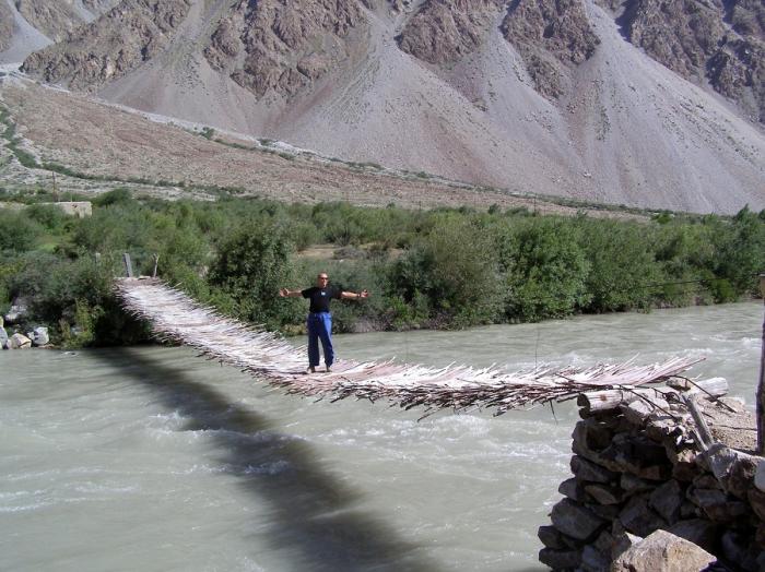 Над всем этим бешеным безумием мирно покачивается хлипкий на первый взгляд мосток из сплетенных проволокой сухих хворостин. Ступаешь на него и сердце замирает – вот сейчас захрустит и рассыплется хрупкое сооружение. Но мост, податливо пружиня под ногами, не обращает внимание на наши мысли и продолжает крепко связывать два берега.