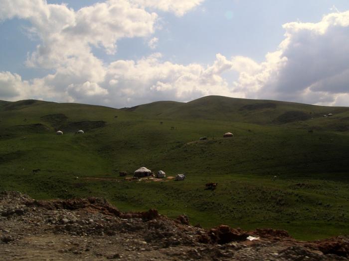 После спуска попадаем в неласковые и недружелюбные руки киргизской таможни, которая долго и недоверчиво изучает наши бумаги, досматривает наши машины, явно с целью поживиться. Инспектор отдела наркоконтроля пытается обвинить нас в грязных намерениях, связанных с открытием новых наркотрафиков. Ну, а что ещё ожидать от машин с московскими номерами, едущими из Душанбе через горы в сопровождении таджикского коллеги?! В итоге, зачитав до дыр нашу серьёзную бумагу про дороги без границ и дружбу народов, конечно же, все таможенники успокаиваются и понимают, что ни к тем пристали, да, и взять с нас нечего, открывают шлагбаум и мы попадаем в Киргизию, в зелёную Алайскую долину.