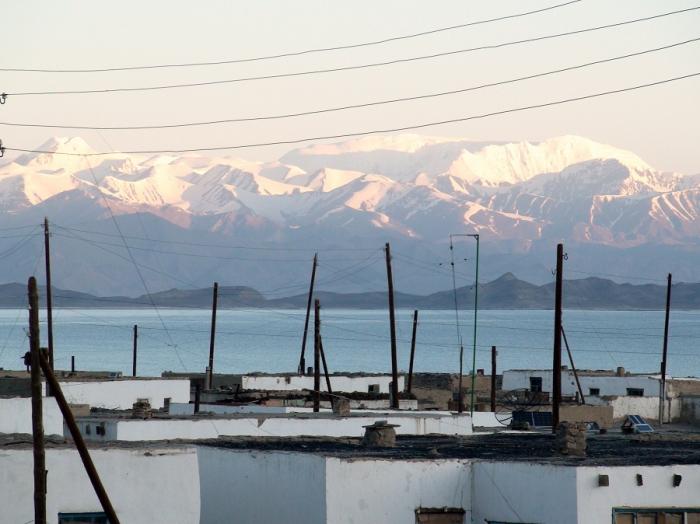 Часть 6. 06.08.09. Утром градусник показывает +6ºС, как и должно быть на высоте в 4000 метров. Плавно поднимаемся на перевал Уй-Булак (4232 м), последний раз любуемся видом на черное озеро Каракуль и начинаем подъём на перевал Кызыл-Арт. Фото 107. Хребет Сары-Куль. Фото 108. Утро в высокогорном кишлаке Каракуль.