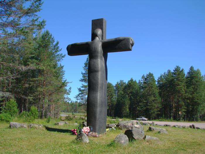Заезжаем посмотреть на Мемориал «Крест Скорби» — первый в России монумент, посвященный жертвам советско-финской войне 1939—1940 годов. Установлен он 27 июня 2000 года в Карелии, в районе урочища Питкякангас на развилке дорог А131 и Р21. Памятник высотой около шести метров, изготовлен из чугуна в Финляндии. Автор — карельский скульптор Лео Ланкинен. Памятник представляет собой крест, с двух сторон которого изображены скорбящие по погибшим сыновьям русская и финская матери. Удивительный памятник-призыв к историческому примирению двух народов. На фоне украинских событий 2014 года смотрится потрясающе.
