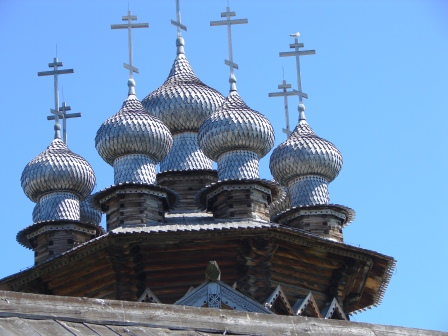Сегодня едем на Кижи. Жара под 30 градусов. На такси переезжаем в пассажирский порт. Множество фирм заманивают на свои кометы-метеоры. Мы выбираем фирму «Русский север» и через час с небольшим оказываемся на острове мечты.