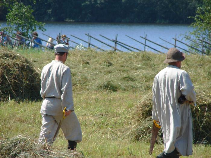 Теперь на остров привезено множество деревянных домов Прионежья, часовни, мельницы. В просторных северных домах туристов встречают живые экспонаты – крестьяне и крестьянки 18-19 веков, показывающие традиционные карельские ремёсла: ткачество, вышивание, резьбу по дереву. По полю, засеянному рожью, расхаживают мужички в крестьянских кафтанах, с косами, граблями и ножовками с пластмассовыми ручками(!). В общем, шведский Скансен перебрался и на наши, русские просторы, и это хорошо!