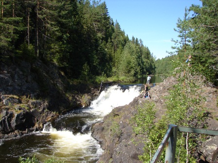 …Прекрасная погода, прекрасное шоссе, синева ладожских шхер за окном. Что ещё нужно для счастья? Искупаться в Ладоге! Вот и Рускеальские водопады, скромные, по сравнению с Белыми Столбами, но знаменитые тем, что именно здесь Станислав Ростоцкий снял фильм «А зори здесь тихие».