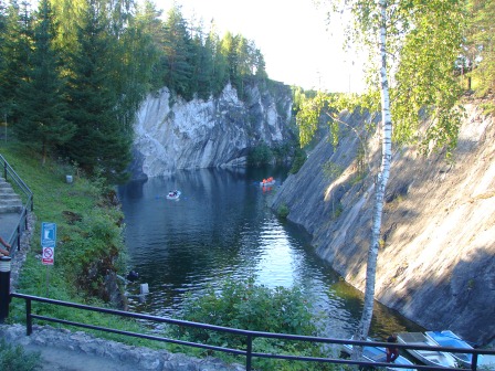 Подъезжаем к посёлку Рускеала, к Горному парку, усилиями энтузиастов превращённому из развалин заброшенного мраморного карьера, в туристский объект российского масштаба.