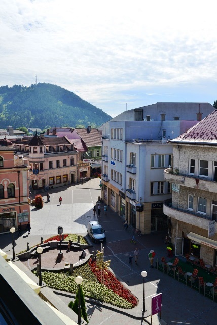 В нашем отеле уверенно работал вай-фай (напомню, что зона его беспарольного действия распространялась даже на близлежащую городскую площадь), так что с утра уже было понятно: здесь с достопримечательностями хоть и негусто – но в качестве «разминочного рюмаша» Ружомберок может быть вполне привлекателен. Этому убеждению способствовал даже беглый взгляд из окон нашего двухкомнатного номера: налево…