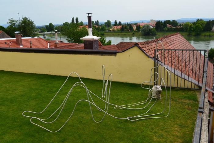 Улица вывела нас к Sončni парку, который завершается отвесной стеной над рекой Дравой.