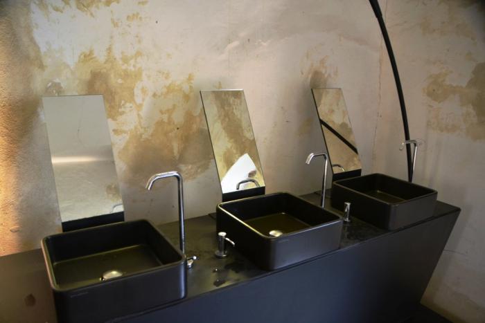 Вот эти вкрапления подчеркнутой современности здесь очень кстати! Суперстильный туалет с модерновым освещением ожидаешь увидеть в какой-нибудь современной арт-галерее. Остается для музыкального сопровождения выбрать что-то типа «Дориме!»