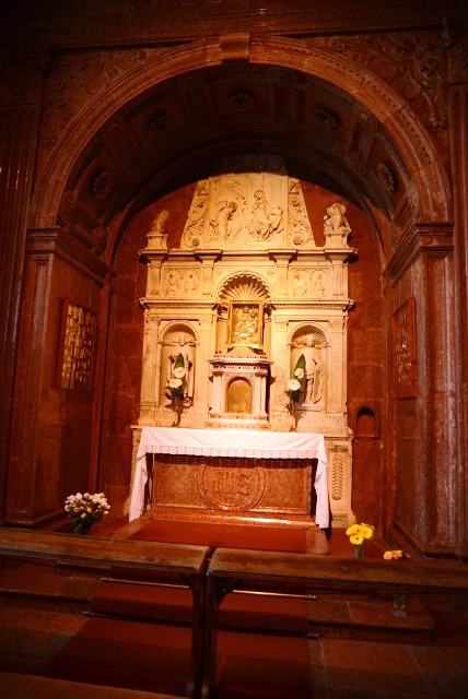 Справа от алтаря находится вход на лестницу, ведущую в сокровищницу. Фотосъемка в этой части категорически запрещена. Здесь собраны церковные ценности, литургические принадлежности и прочие предметы, используемые в религиозных целях.