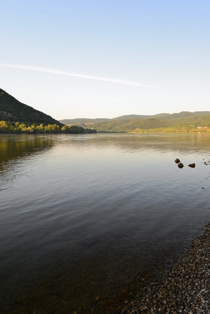 Но вот попав на смотровую площадку, мы поняли, что сами себя обманули: закатное солнце обесцветило все краски и Дунай был совершенно невыразительным на фоне блекло-темных холмов.