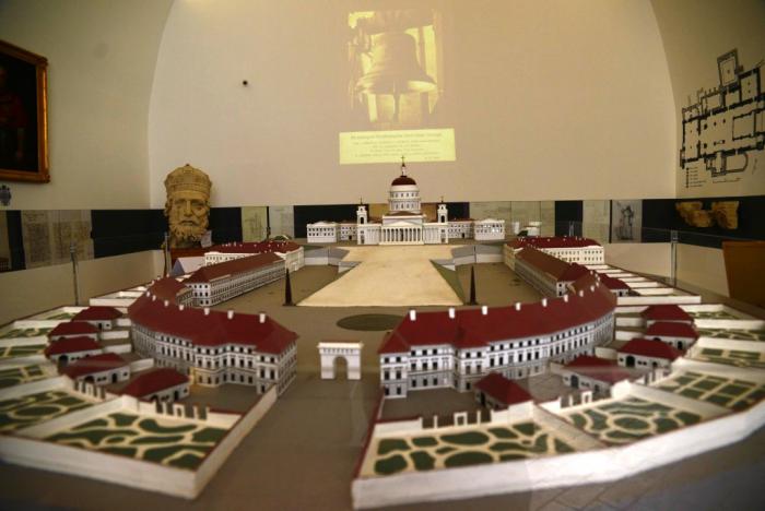 Панорамный зал: здесь выставлен первоначальный макет базилики и прилегающих построек всего комплекса: