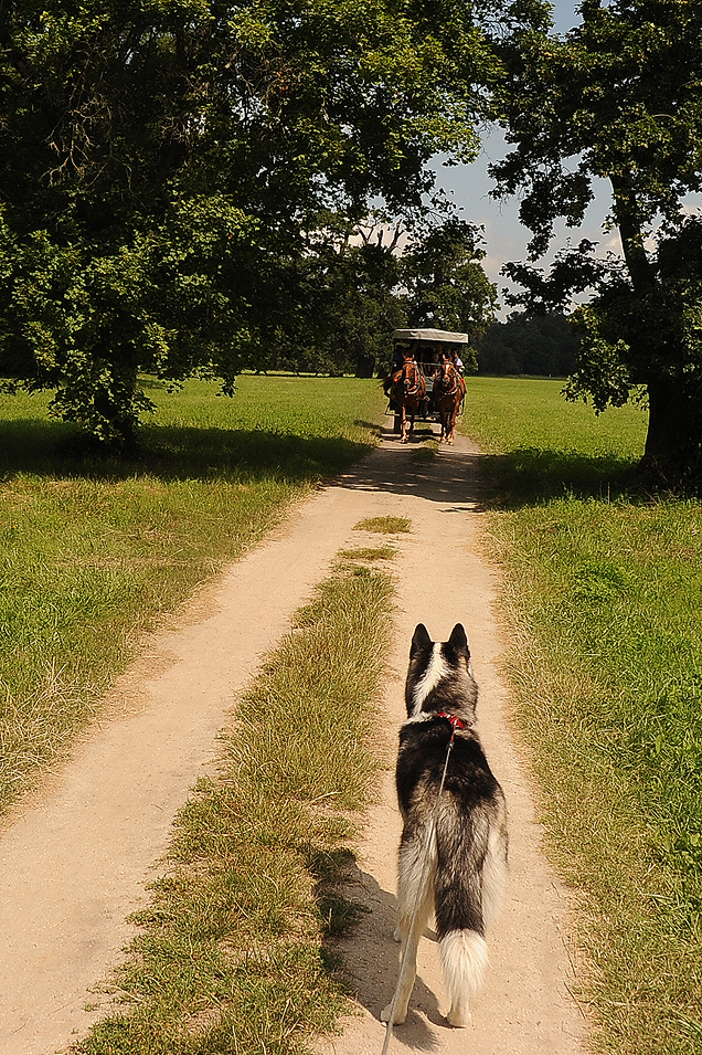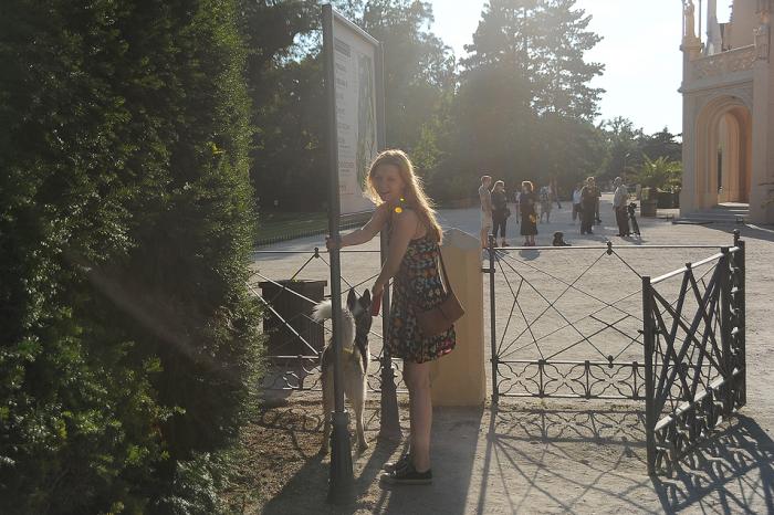 После вечерней помывки зверь выглядел почти по-королевски – не стыдно и в свет выйти. Накануне мы уже выяснили, что в этот самый свет, а точнее – в дворцовый парк, с собаками не просто можно, а можно-можно-можно…