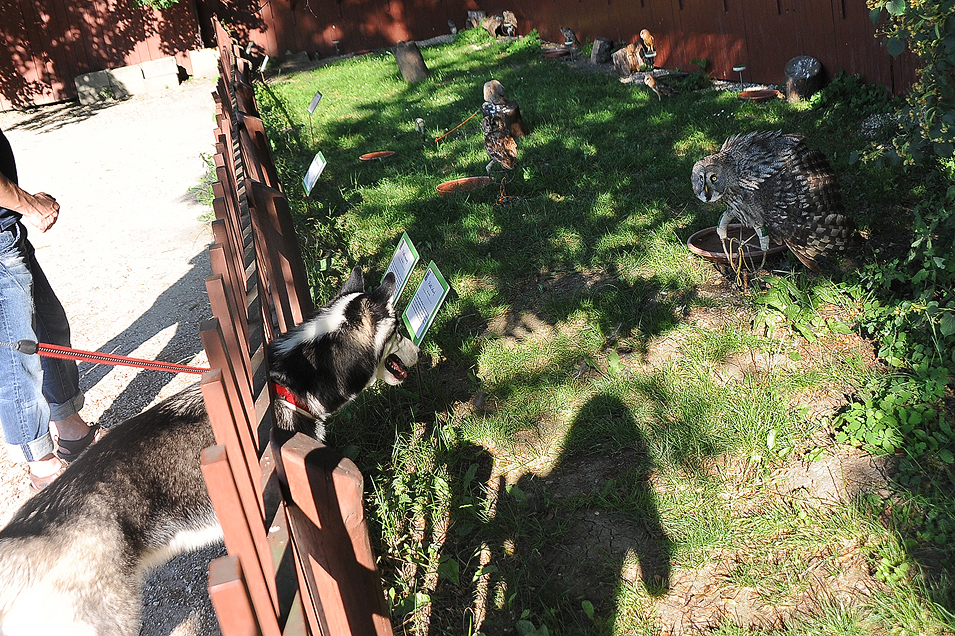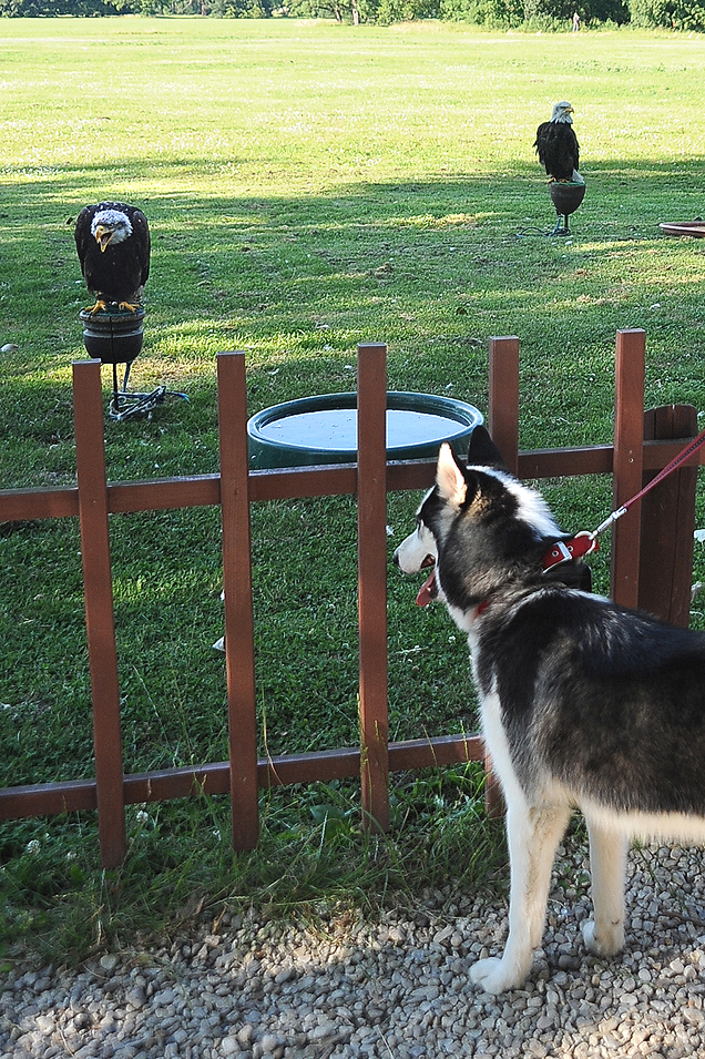 В глубине парка мы обнаружили питомник для хищных птиц. Представление в это время уже закончилось, и на территорию с собаками пускали.