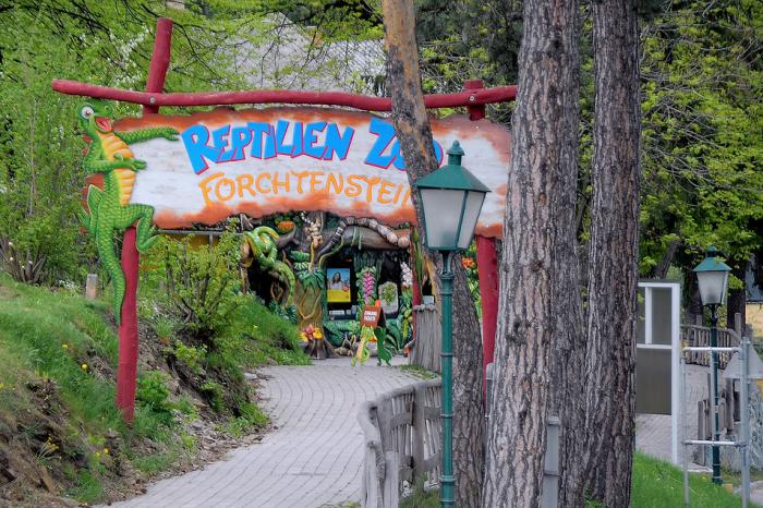 Оставшись тет-а-тет с пёсычем, а я вдруг поняла, что зря отказалась от Машкиного предложения разделить купленный на заправке бутерброд по-братски: в желудке что-то надрывно заурчало. Конечно на территории замка есть кафешка, но нам туда нельзя… Пошли искать пропитание. Сначала с горы – там детский парк-экзотариум: сплошь рептилии и никакой еды…
