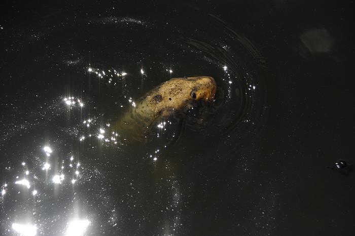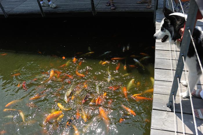 Буквально через пару секунд пёс отвлекся на звук плещущейся воды – кто-то кинул хлеб в водоем по соседству. Живых рыб Дукти на тот момент тоже ни разу не видел. А было их – ну, сами видите – много.