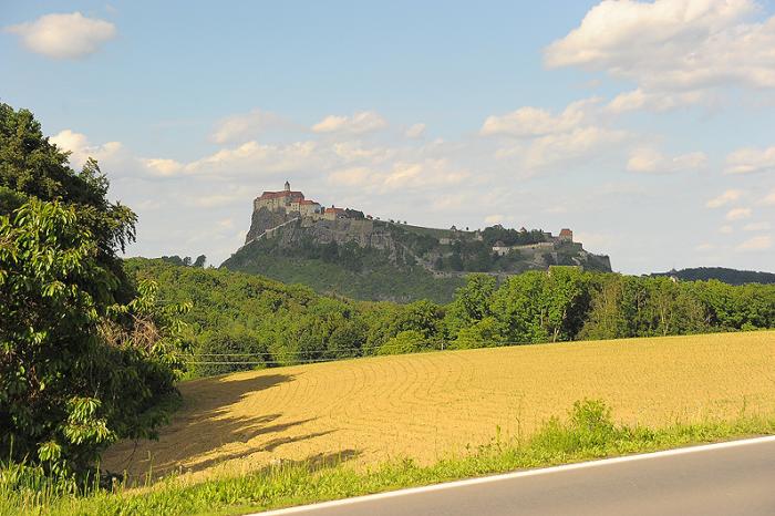 Герберштайн очень странно расположен… Не как обычно — в полный рост на горе)) Он «заглублен» в складки гор. Со стороны парковки его не возможно увидеть. Его очень сложно снимать, лучше всего с какой-нибудь соседней горы. Вот например так:http://clubs.ya.ru/puteshestvie/replies.xml?item_no=258957