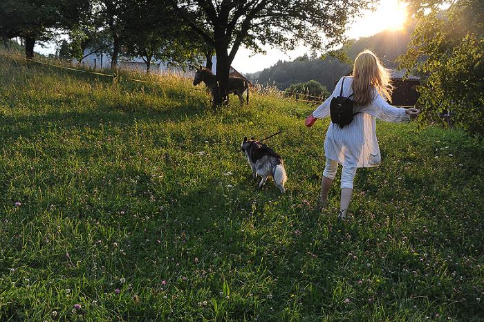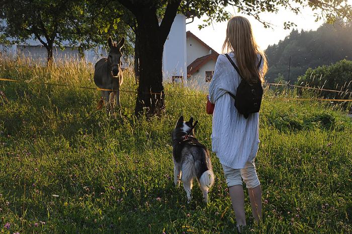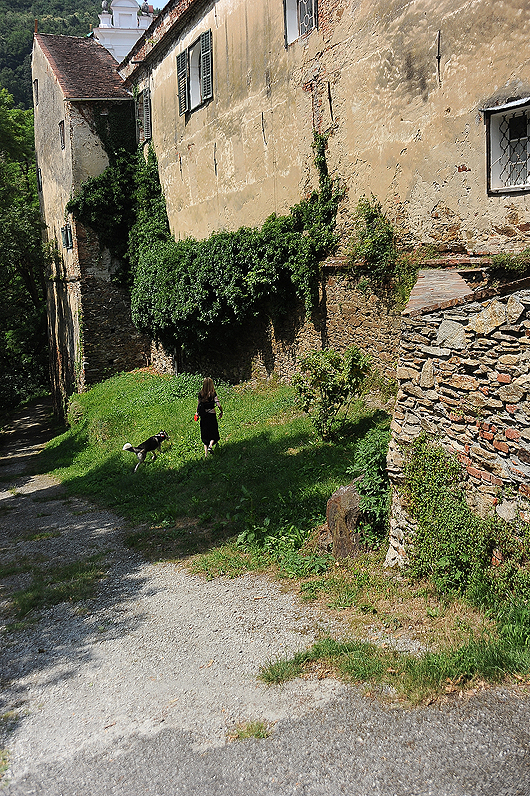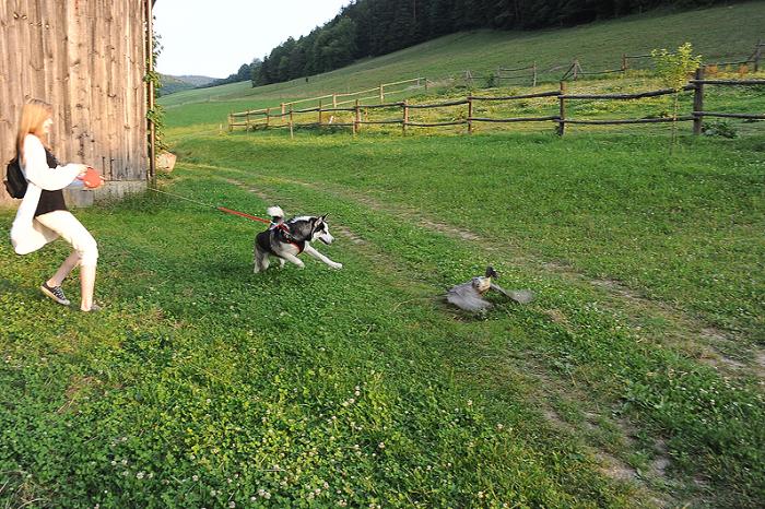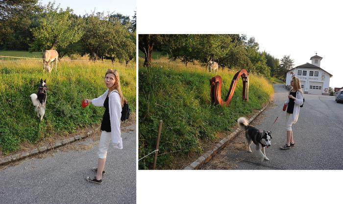 По дороге обратно, встретили очень милое австрийское семейство, которое, увы, не знало, что в Герберштайн можно брать собак: у них две штуки – каждому ребенку по собаке (очень мудро). Дети немного поиграли с Дуктяшей в палочку, но тот после трех бросков утратил интерес к апортированию, нашел собственную палку и начал ее грызть.