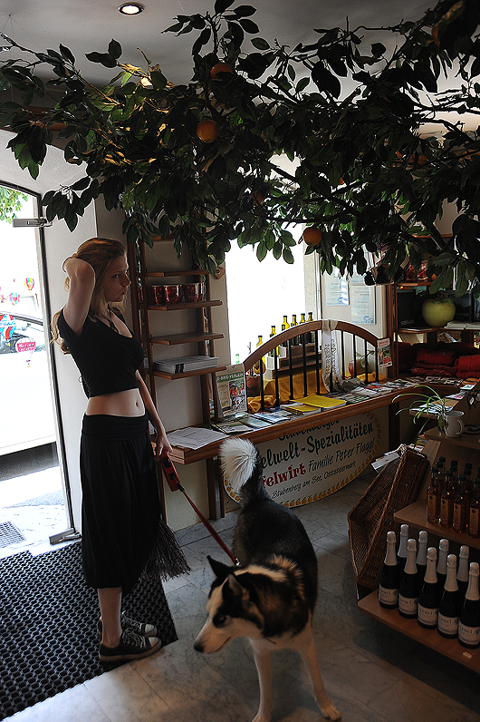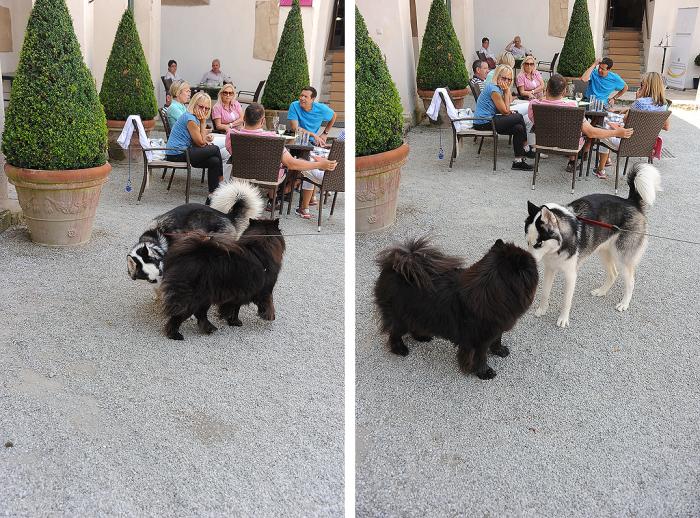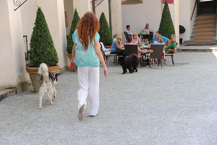 Мы сели за соседним столиком открытого кафе – выбора не было. И все время пока Маруська обследовала внутренности родового гнезда Герберштейнов (где-то час), Дукти развлекал хозяев чау-чау, пытаясь вызвать ветерана (13 лет) на щенячью возню – не преуспел.