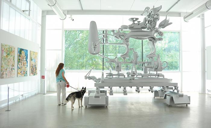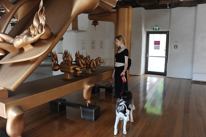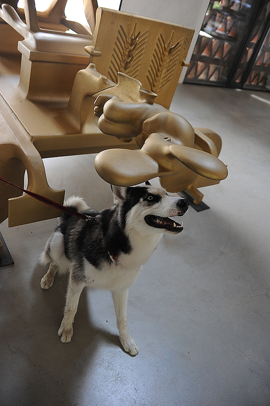 А по дороге решили обследовать еще один очень интересный объект – музей Бруно Джиронколи. (Дело в том, что замок частный, и нынешний его хозяин находится не просто в хороших, а в дружеских отношениях с австрийским маэстро). Набрались наглости и спросили про собаку. И, как это ни удивительно, получили положительный ответ… К современному искусству Дукти отнесся со стоическим равнодушием.
