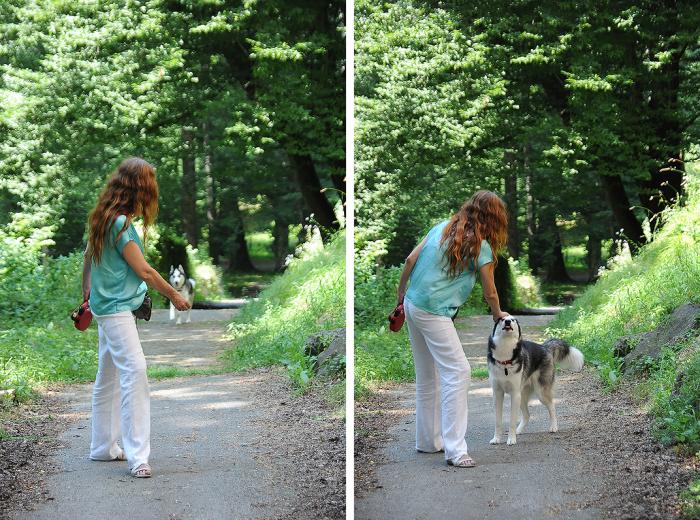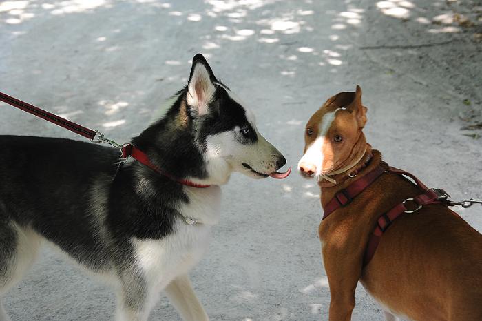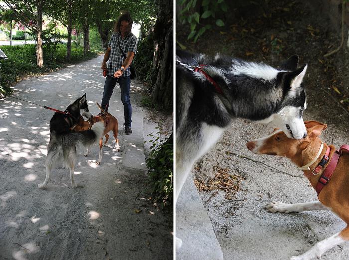 По дороге встретились с очаровательным юным овчаренышем. Ребята немного поиграли, а мы разговорились с хозяевами. И оказалось, что с собаками на территорию пускают: «Короткий поводок )) Нет проблем». Возня Дукти быстро надоела, и он занялся изучением рельефа местности, продемонстрировав, тем самым, некоторую взрослость. Мелкого хозяевам пришлось уволакивать силой.