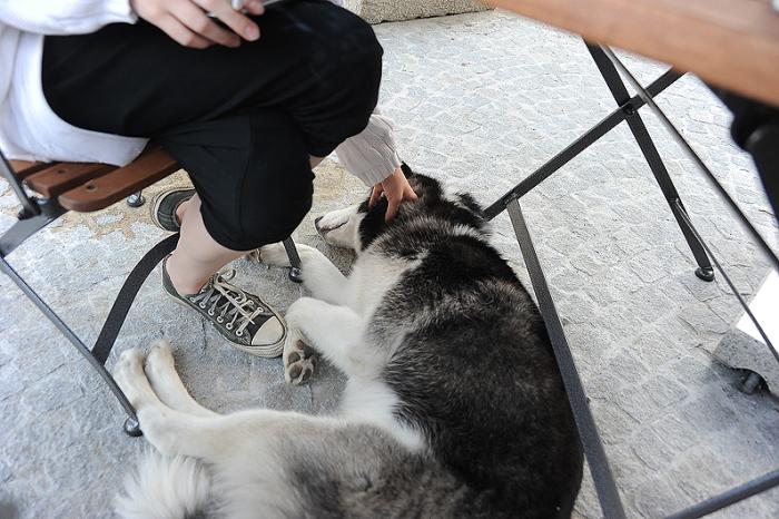 Учтите, в самом кафе воды собакам не дают. Миска с водой стоит рядом с «М» туалетом.