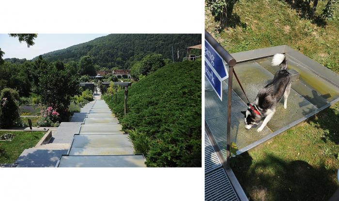 Запивать проглоченное пришлось из многоярусной поилки, которая течет вдоль платформ, на которых в исторической последовательности, но в уменьшенном размере представлены сады разных эпох.