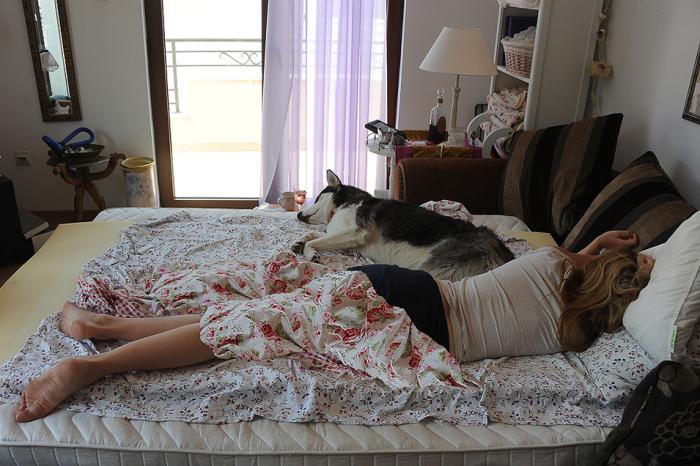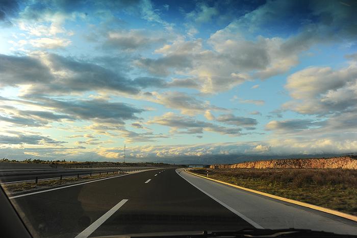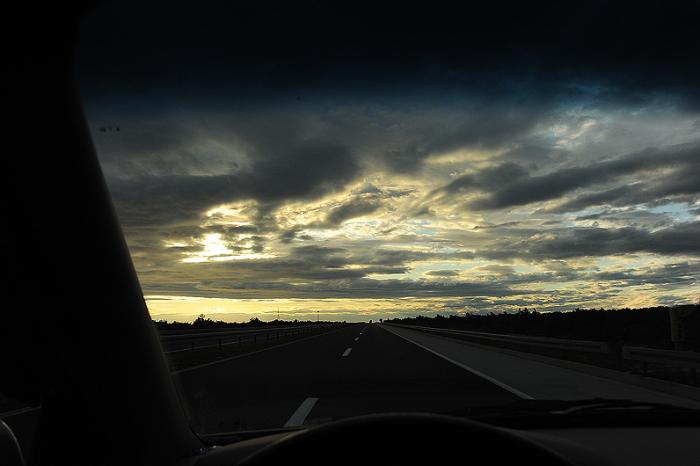 Моя команда задрыхла. Где-то в районе двух и я прикорнула на пару-тройку часиков (ни кофе, ни Эй-пи-ви, ни зарядка, ни даже аппликаторы Кузнецова уже не спасали – дорога великолепная, но до жути монотонная). Попыталась вытащить Дукти на прогулку – не сдюжила. Зверь спал, как подрубленный.