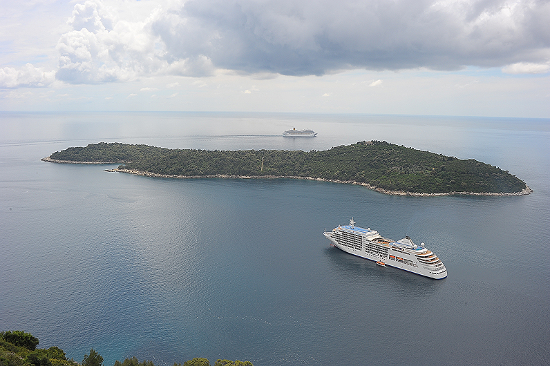 Очутившись перед Дубровником, поняла, что ноги гудят, голова кружится, да и Дуктяше уже пора прогуляться. Пришлось делать стоп на парковке перед вантовым мостом. Только Маруська начала вытаскивала Дукти из машины, как подъехал автобус набитый туристами. И все время покуда я разминала затекшие члены и останавливала голововерчение, они с энтузиазмом фотографировали Дукти во всех возможных ракурсах, полностью наплевав на «поглед».