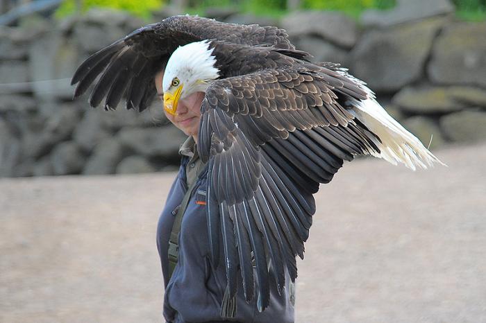 Все время шоу мы стояли у входа. И не потому, что с собаками на территорию нельзя входить – с ними можно разместиться за птичьими вольерами – а потому, что как раз там стоял огромный и невероятно агрессивный лабрадор. Увидев Дукти, он попросту начал сходить с ума. И мы отошли, предпочитая не раздражать птиц истошным лаем соперника.
