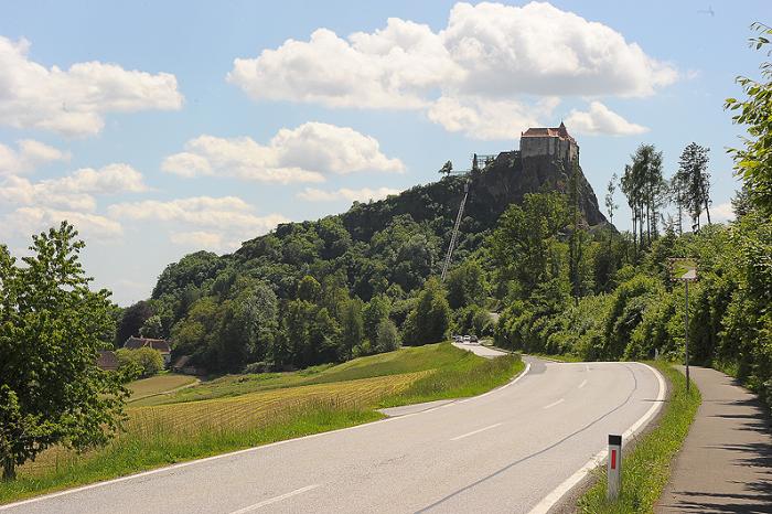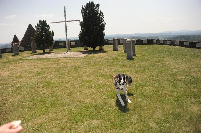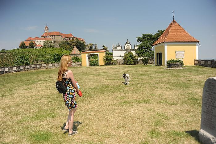 Перед Машкиным походом внутрь замка решили перекусить в местном гаштете. Это вид на площадку мемориал и детскую площадку. Рядом с последней и расположена кафешка.