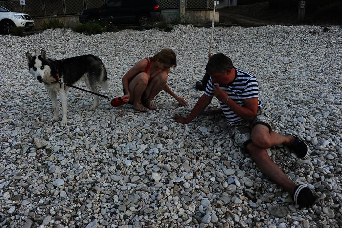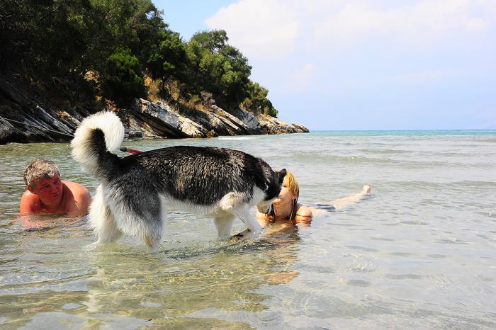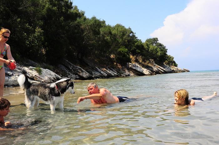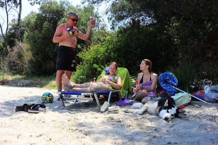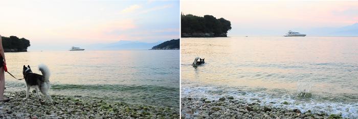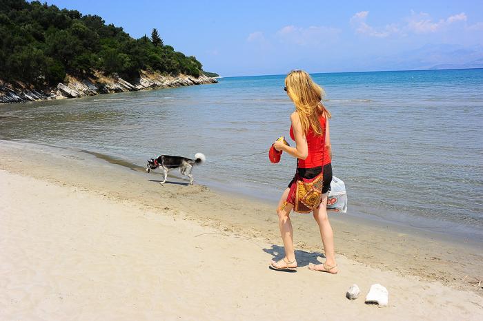 Немного о пляжах Корфу. Мы не задавались целью найти такой, где бы было разрешено пребывание собак – слишком мало времени. Просто уходили подальше от оборудованных лежаками мест, где нет табличек с запрещающим знаком.