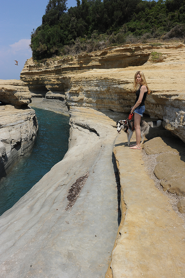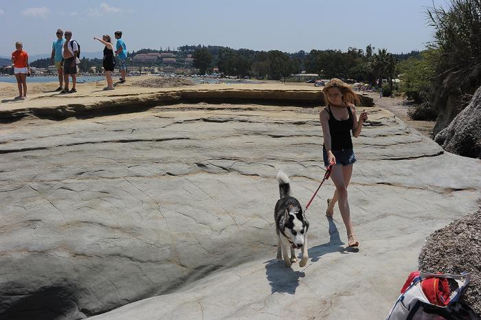 Обжираловкой (и Даша, и папа готовят на три звезды по Мишлену) и подсолнцемвалянием. Культурная программа тоже была. Сразу предупреждаю – в Керкиру по такой жаре с собакой мы соваться не решились. Обследовали близлежащие окрестности. В результате поцеловали замки, пары археологических сайтов (классика для Греции – малоизвестные сайты могут не работать по неуважительной причине… Хотя, вру, по уважительной – просто сегодня мы не хотим работать. Не хотим и все тут!) и полноценно ознакомились с двумя достопримечательностями: одной рукотворной и другой — природного происхождения.