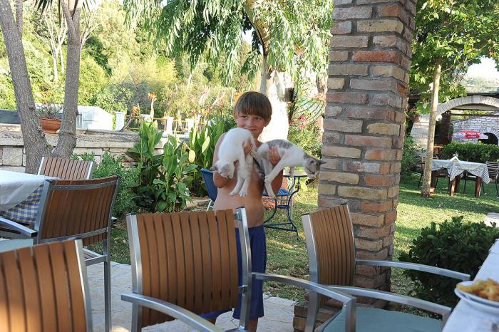 Однако проблемы были. Проблемы с ассортиментом мяса в местном магазинчике. В первый раз мы пришли туда к шапошному разбору, и были вынуждены купить зверю фарш – от него он решительно отказался. На второй раз, придя в нужное время, на прилавке из подвида «говядина» мы обнаружили только вырезку… по какой-то фантастически заоблачной цене. И когда хозяйка узнала в кого пойдет этот продукт, она: 1. сделала круглые глаза; 2. сказала, что у нее можно заказывать нужное нам мясо по ценам более вменяемым. Так что если с вами на Корфу зверь, питающийся натуралкой, подойдите к продавцам своей ближайшей лавки и спросите о возможности заказа.