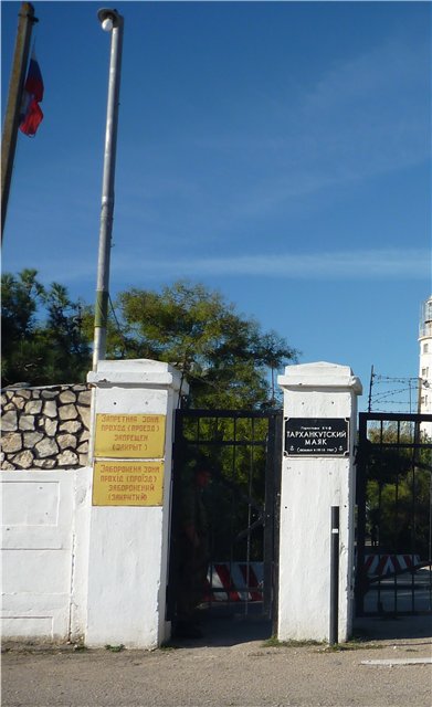Городок (или деревня) небольшой, проезжая прямо через центр до конца, затем уходим левее, за город. В самом городе много мелких продуктовых магазинчиков, вывесок у жилых домов о продаже ночлега, проката велосипедов, в общем, отчасти чем-то напомнило нашу станицу Должанскую, ближе к концу города запестрели вывески о дайвинге, тут то все стало понятно … На окраине города была база дайверов, с прокатом оборудования, уроками дайвинга и экскурсиями. Мы устремились далее – немного проехав у моря увидели полу брошенные дачи, и прямо напротив них возвышался Тарханкутский маяк (основанный в 1816г.)
