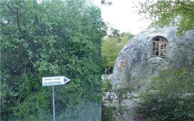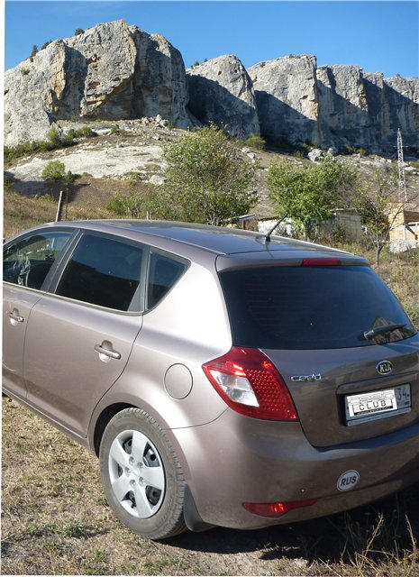 Поворачиваем в сторону Сирени и Танковое. Населенные пункты больше я бы отнес к деревням. Мы немного начали плутать, т.к. пропустили нужный поворот (он на самом въезде в Танковое). Сначала мы заехали в само Танковое, немного поблукав вернулись обратно, и устремились с сторону Куйбышево, но поняв что это не та сторона, решили вернуться в Танковое (к слову: данная трасса является не что иное как дорога Бахчисарай-Ялта, проходящая через гору Айпетри, и еще ряд гористых рельефов – красотища неимоверная, советую обязательно по ней проехать!). Вернувшись обратно, мы повернули на Красный мак, по пути к нему справа встретились горы у которых была площадка и народ тоже к ней подъезжал (мы не стали уточнять что там было, т.к. время поджимало). Приехав в Красный мак (расстояние между селами небольшое, так что петлять можно смело, тем более много интересных пейзажей, кафешек и т.д.) остановились у «кафешного комплекса» разузнать как проехать в Эски Кермен, но там никто ничего внятного не мог сказать по существу вопроса. Решили узнать у местных в деревне, если и там ничего не выйдет – то ехать в Севастополь, т.к. дело шло к вечеру. В деревне у магазина встретили старичка и начали его расспрашивать, про Эски Кермен он ничего не слышал, но какие-то горы есть слева при въезде в Красные маки, поблагодарив его, направились в ту сторону. Перед Красными маками, есть грунтовка, она ведет в сторону села Холмовка, перед Холмовкой уходим на лево, до самого конца грунтовки, увидев горы, съезжаем с нее правее, прямиком к горам. В районе Холмовки начали появляться самодельные таблички с указанием на Эски Кермен, это уже радовало и вселяло уверенность. Дорога не очень, разрушенная бетонка, ехать лучше по накатанной обочине.