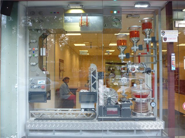 Рядом с гостиницей был фирменный магазин конфет Рошен, довольно таки интересно оформленный – на витрине был мини-завод по производству конфет, там все двигалось, и приготовлялись конфеты.